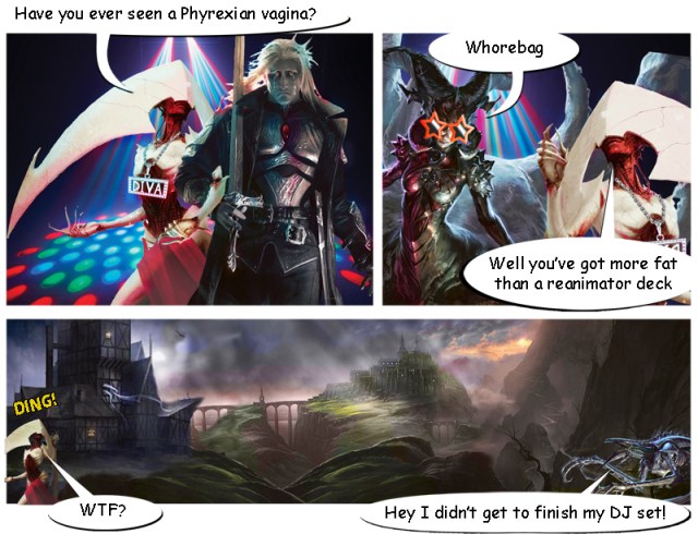 I tried to comfort him in my ‘own special way’, but then Sheoldred called me a slut so I called her fat and somehow we all ended up on Innistrad.