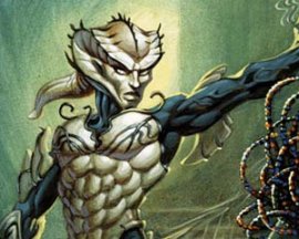 For many years Volrath served Yawgmoth as Envincar of Rath. It was his job to oversee the plane and prepare it for its upcoming role in the Phyrexian invasion. A cruel and ruthless leader, he enslaved nations and killed thousands, and his cold intelligence and natural shapeshifting abilities allowed him to slip through any net. Add to this an entire plane of resources at his disposal and you have one hell of a badass. He served as Magic’s face of evil for several years, and was the arch-nemesis of the hero Gerrard Capashen.