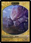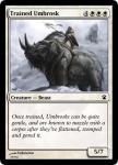 Chimbaloo– There was this childrenβs book I loved as a kid, βThe Ten Monster Islandsβ. Of all the monsters in it, my favourite were the Chimbaloos, fabulous but elusive creatures hunted for their golden horns. This is a top-down design of such a creature; always hunted but never caught. Mechanically itβs kind of like a beefed-up Jackalope Herd, another card I also really liked.