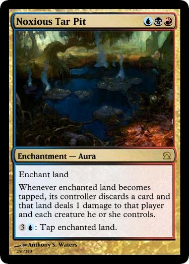 - Cut the boring cards, and put in AWESOME cards instead (Case in point: compare the old Grixis rare Noxious Tar Pit to the new one Caliph of Khorr). Above all other things, this set is meant to be shit-giggly fun!
