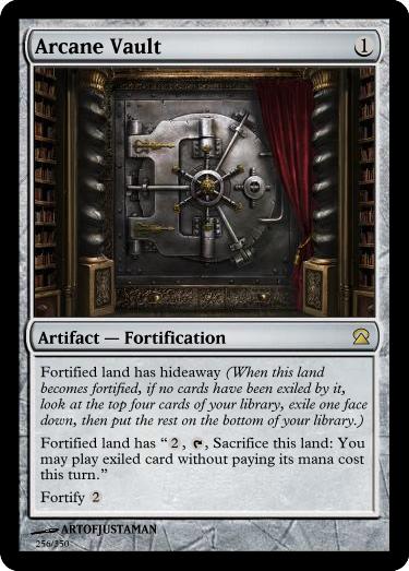 Arcane Vault– I admit, this is pretty out-there. But the whole time I was thinking about how my favourite lands of all time were the Hideaway lands, so when I was revising the set damn straight I did something about it!