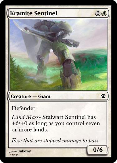 Kramite Sentinel & Wall of Faith– When going over the set as part of my redesign, I worked to eliminate cards that easily removed fatties (Faith’s Fetters) or were otherwise too aggressive in nature (Wayfarer Knight). In their place I put in cards I felt slowed down the environment, but still held their own late-game.