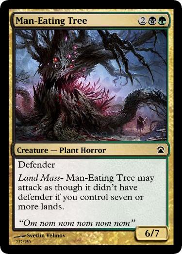 Man-Eating Tree & Scythewing Amphitere– As part of Operation Awesome, I took out cards I didn’t feel were facilitating Battlecruiser style gameplay enough and replaced them with those that did. Ideally cards like these are meant to be powerful enough to skew a player into their colours in limited.